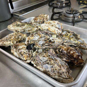 蒸しあがったばかりの牡蠣はとっても熱~い🛀