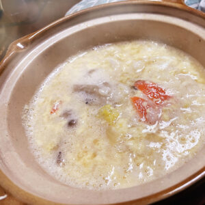 鍋を食べた後、残り汁でつくる、たまご雑炊も美味しいよね~🥚