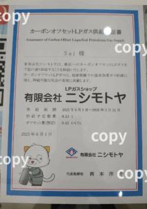今回、ヘアサロン「sai」さんが導入したのは、ボランタリークレジットを利用したカーボンオフセットLPガスです。